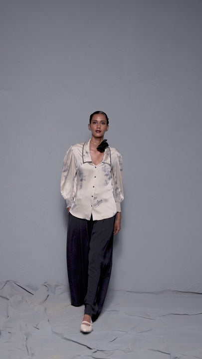 The gently gathered sleeves with cuff detailing lend a polished silhouette that balances comfort with modern charm. Perfect for evening occasions, parties, or elevated gatherings, this top embodies Sheczzar’s signature blend of timeless style and understated glamour.