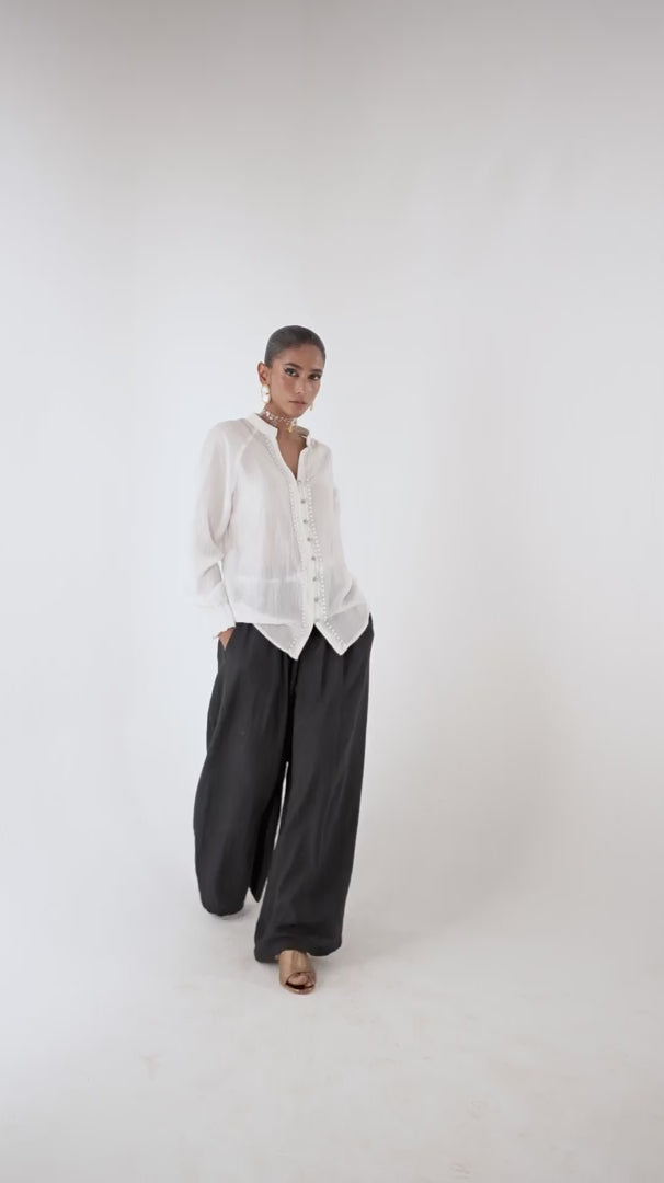Embrace sophistication with the SHECZZAR elegant white formal party wear top, crafted from rich fabric and adorned with exquisite royal lace embroidery. This timeless piece exudes grace and charm, making it perfect for classy styling at formal events, evening gatherings, and special occasions.