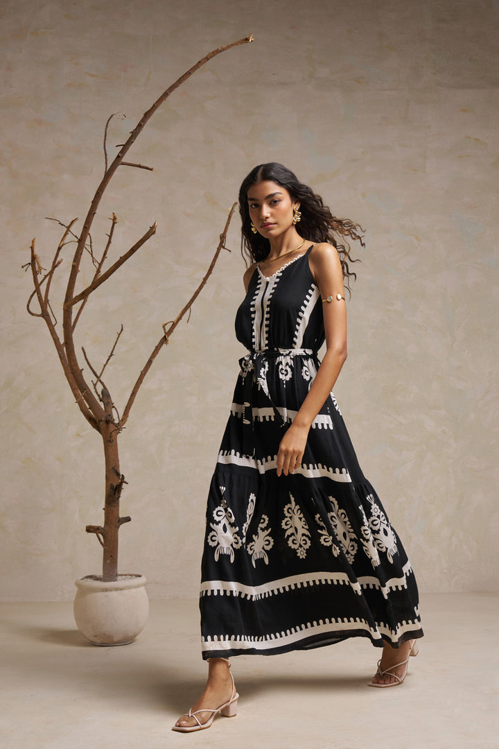 Embrace effortless elegance with the SHECZZAR spaghetti strap ankle-length midi dress. Crafted from pure heavy rayon cotton, this black and white dress offers a soft, flowy silhouette perfect for any occasion. Whether for brunch, vacations, or evening outings, its timeless design ensures both comfort and style.