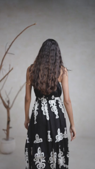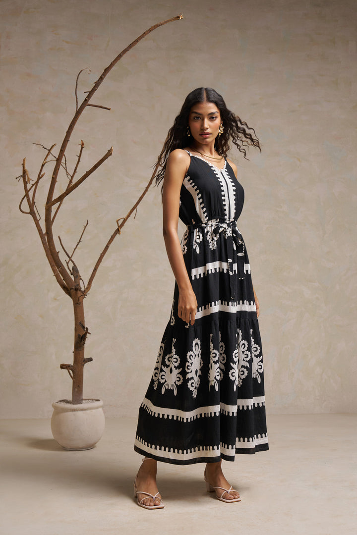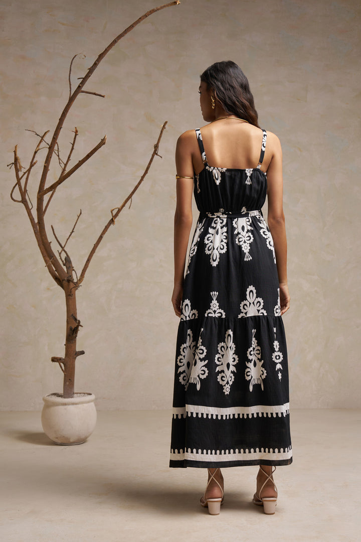 Spaghetti Strap Ankle-Length Midi Dress – Black & White in Pure Heavy Rayon Cotton
