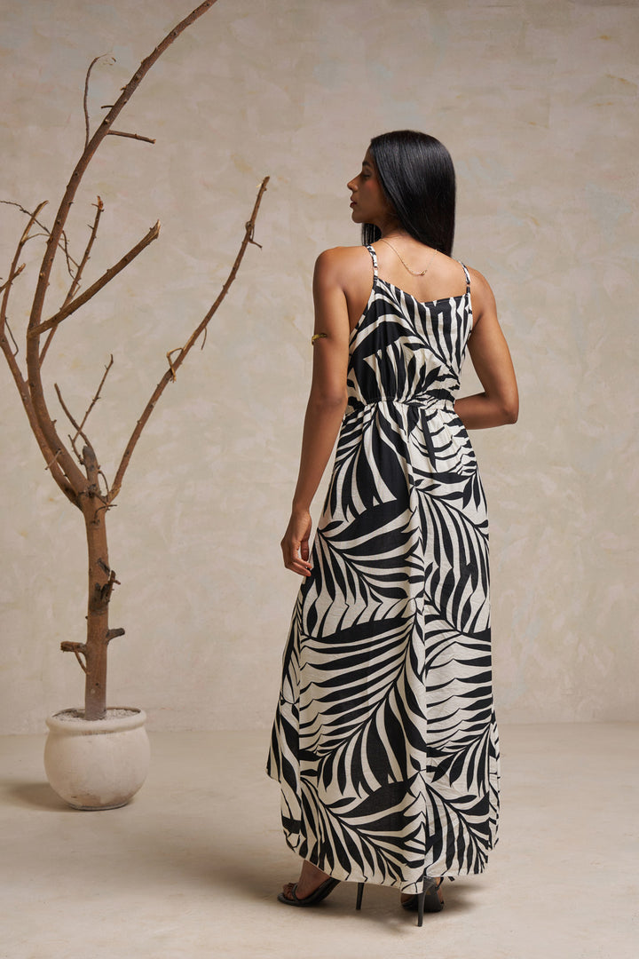 Spaghetti Strap Midi Dress – Black & White with Front Cut & Extended Back