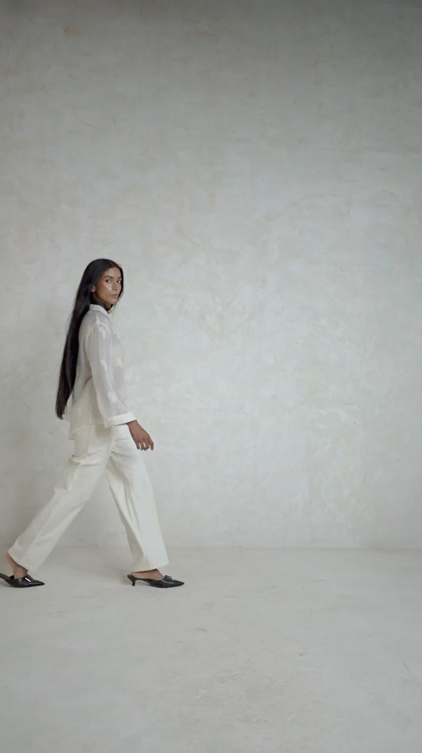 White Cream Crush Cotton Top with Lace Embroidery – Elegant & Chic